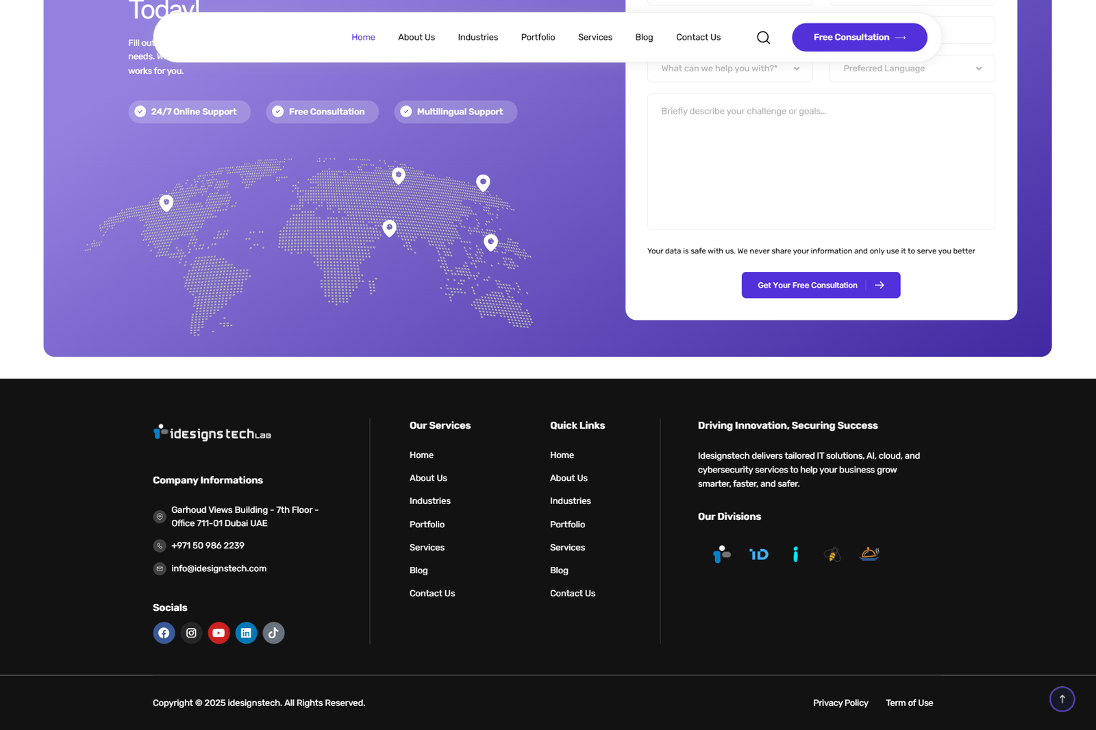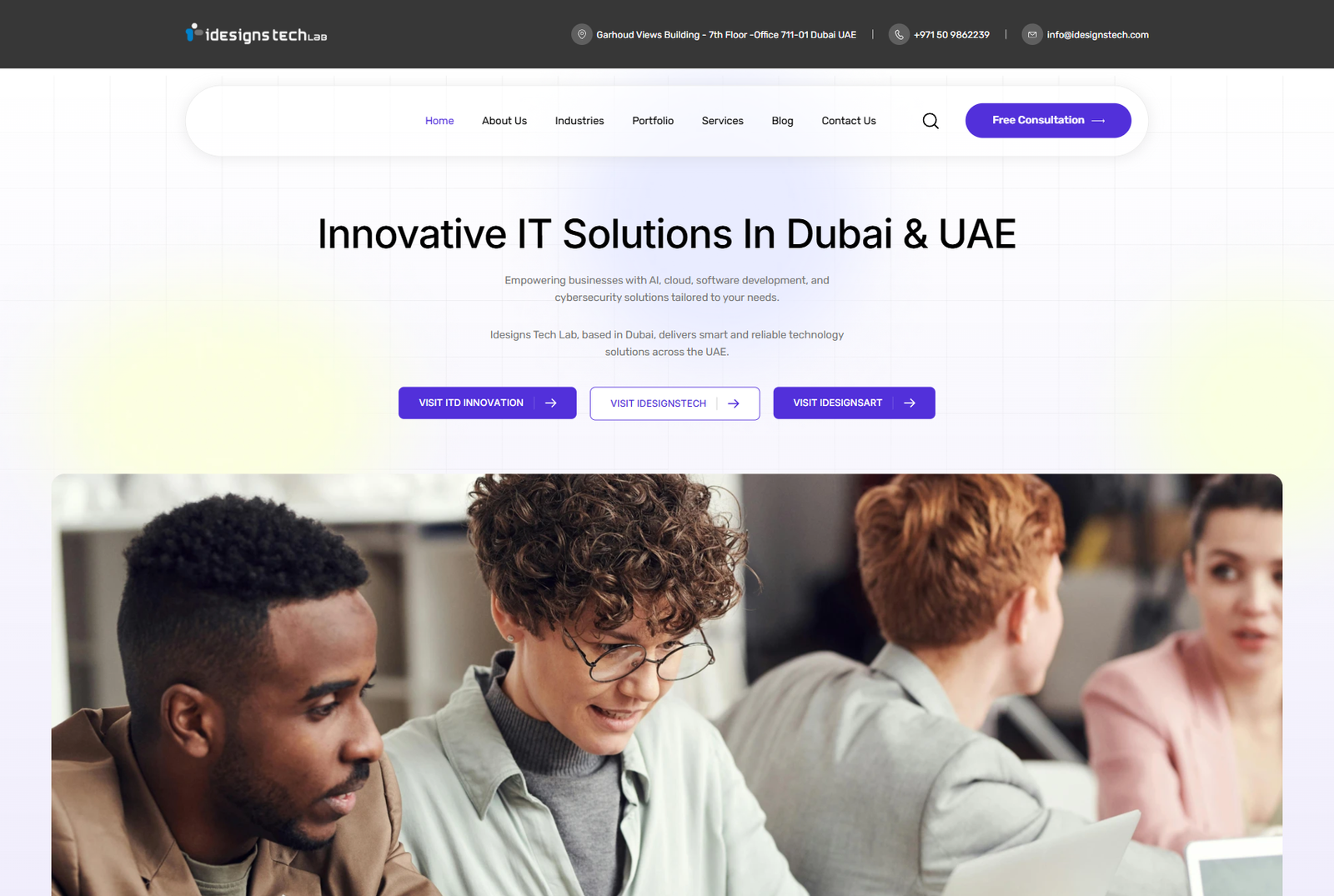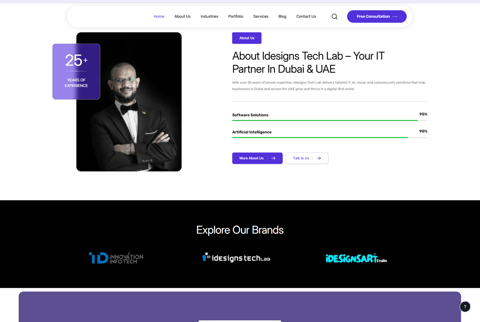The new website elevates Idesigns Tech Lab’s brand to a global-standard IT consultancy. It clearly communicates expertise, showcases decades of experience, and strengthens their position as a reliable partner for AI, cloud, cybersecurity, and enterprise digital transformation across the UAE and beyond.