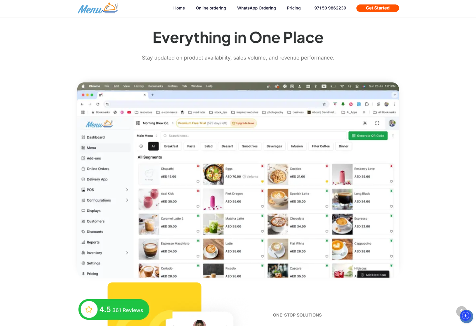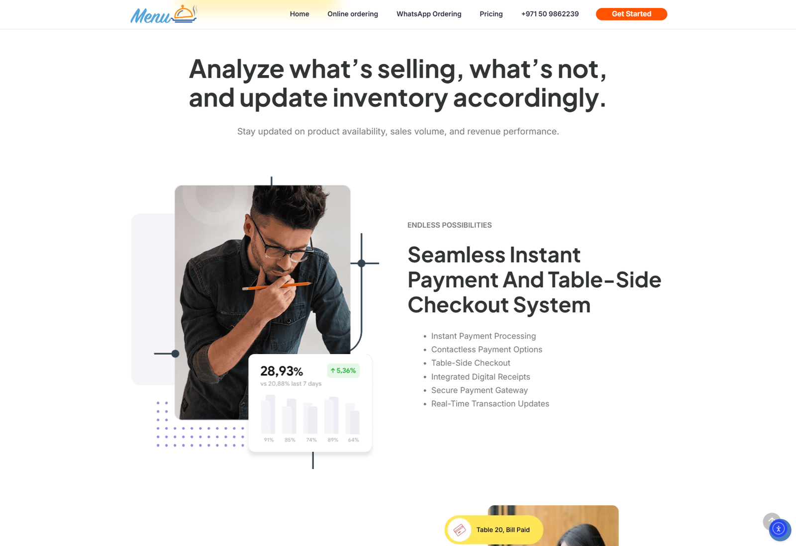 Feature-Rich Product Display: Real-time analytics, instant payments, menu editing tools, and customer engagement features