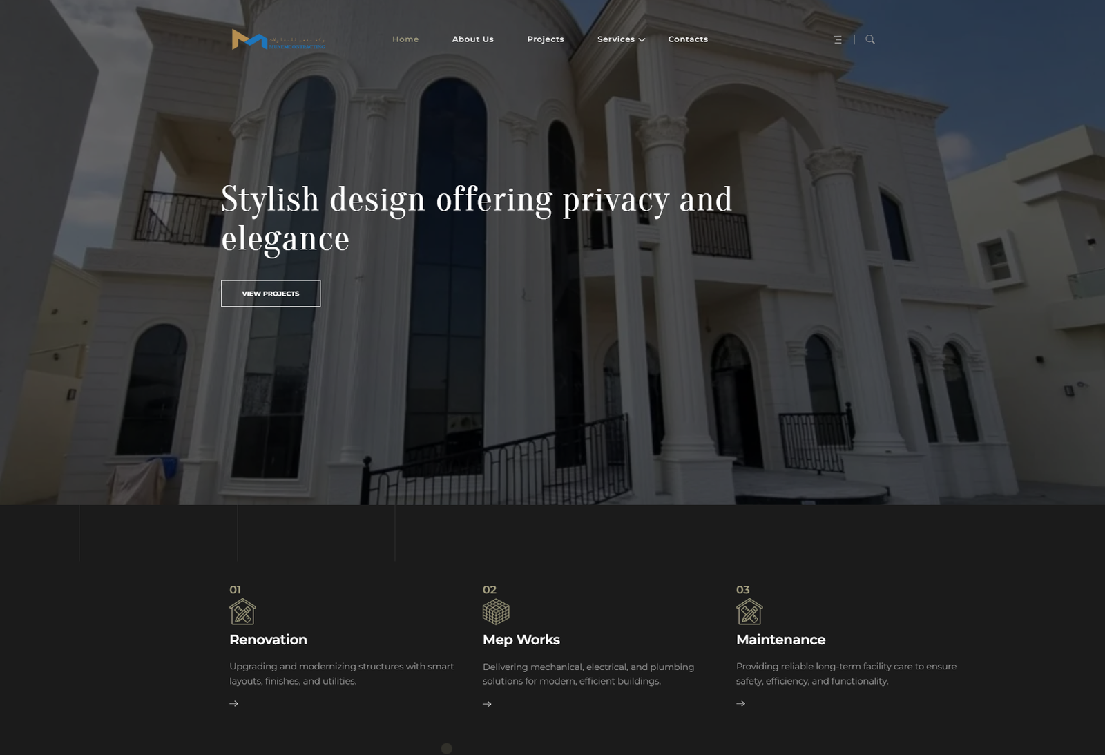 • Service Section Redesign: Renovation, MEP, maintenance, and contracting displayed clearly and professionally