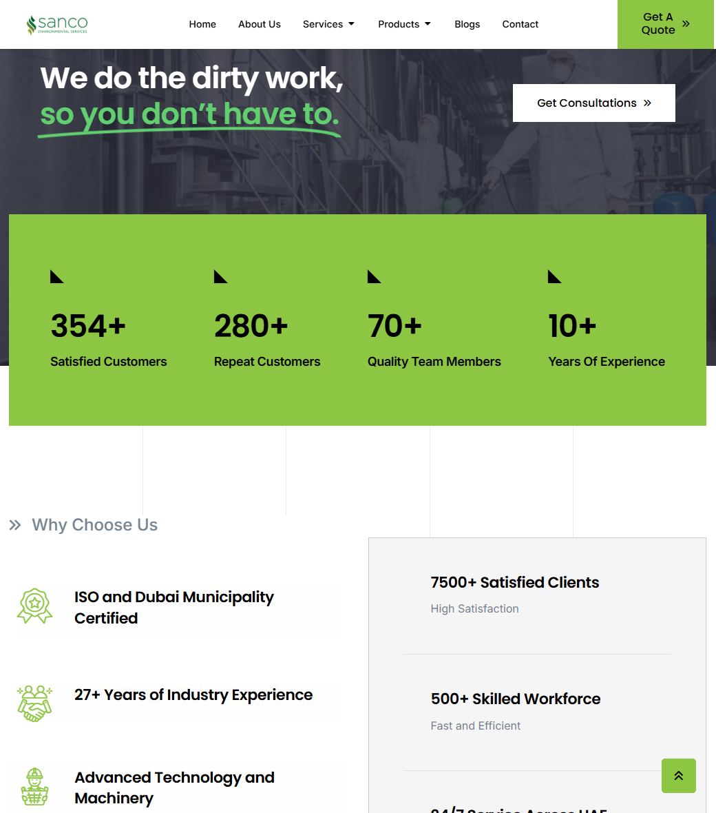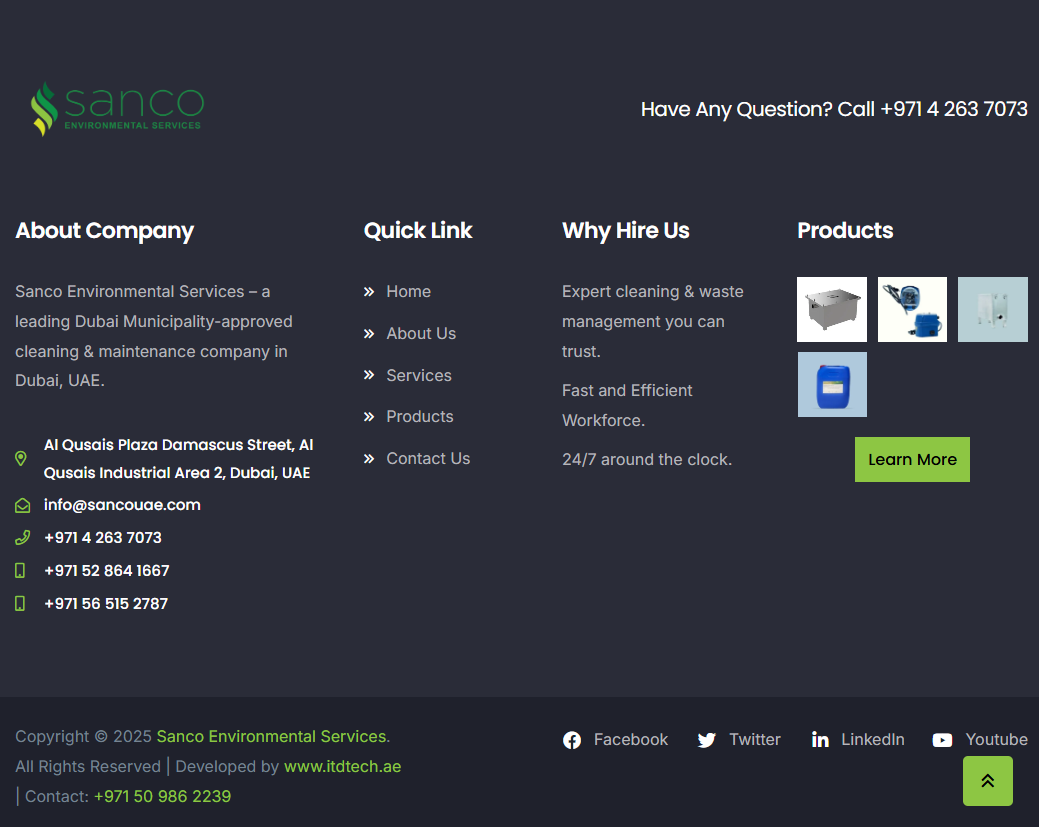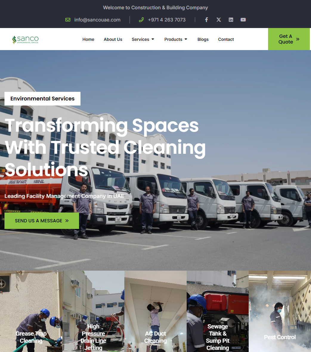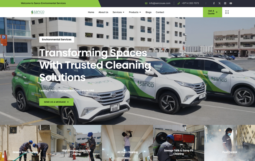 ITD Digital Studio was tasked with creating a professional, modern, and user-friendly website for Sanco Environmental Services, a leading cleaning and maintenance company in the UAE. The goal was to design a digital platform that clearly communicates their comprehensive services, industry expertise, and commitment to sustainability.